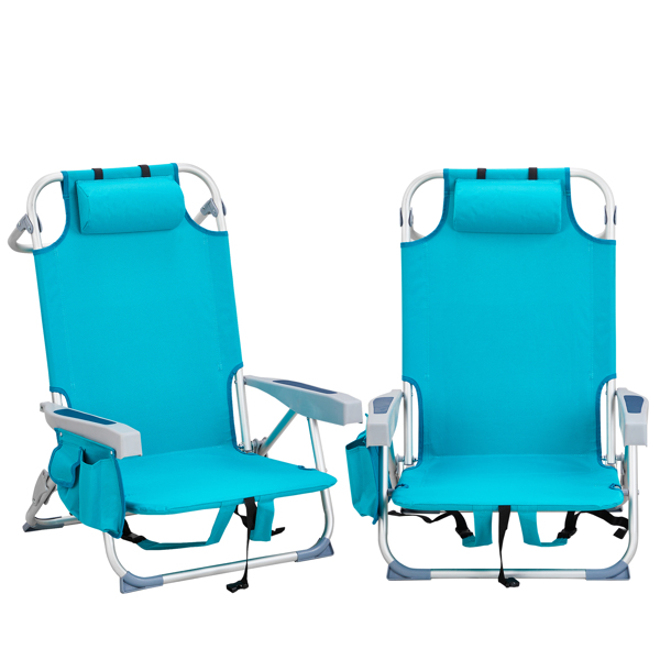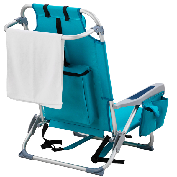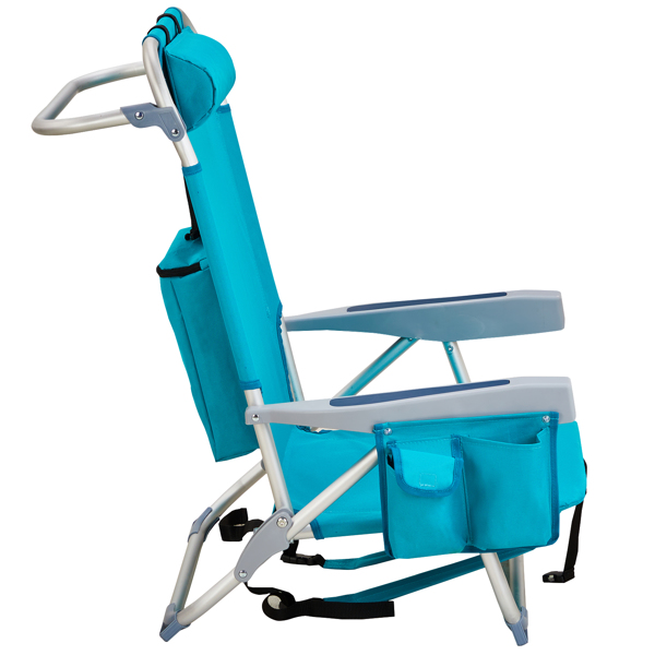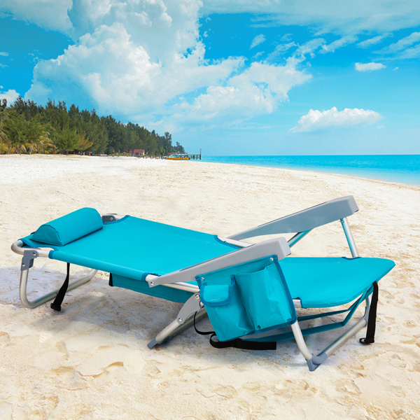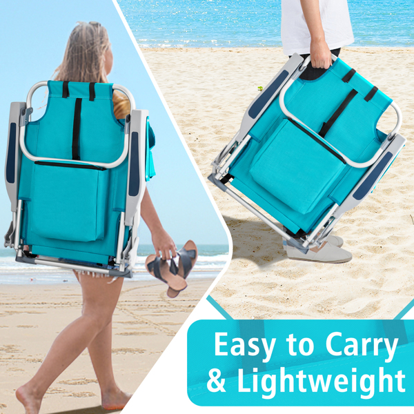 Get comfortable with this Folding beach Chair. It is an ideal solution for sitting and relaxing in comfort during outdoor activities. It is also a must-have for a sporting event, a picnic, a camping trip or even just to the backyard. The aluminum frame is not only light-weight, but also offers even greater sturdiness and stability to make it stand up to various conditions. In addition, the adjustable back with 5 positions to create better sitting feeling, and the extra storage space such as pouches on the back and side cup holder allow you to keeps the necessities right by your side. The beach chair is light-weight and easy to move so that it fits easily inside most vehicles for fast transport wherever you need.